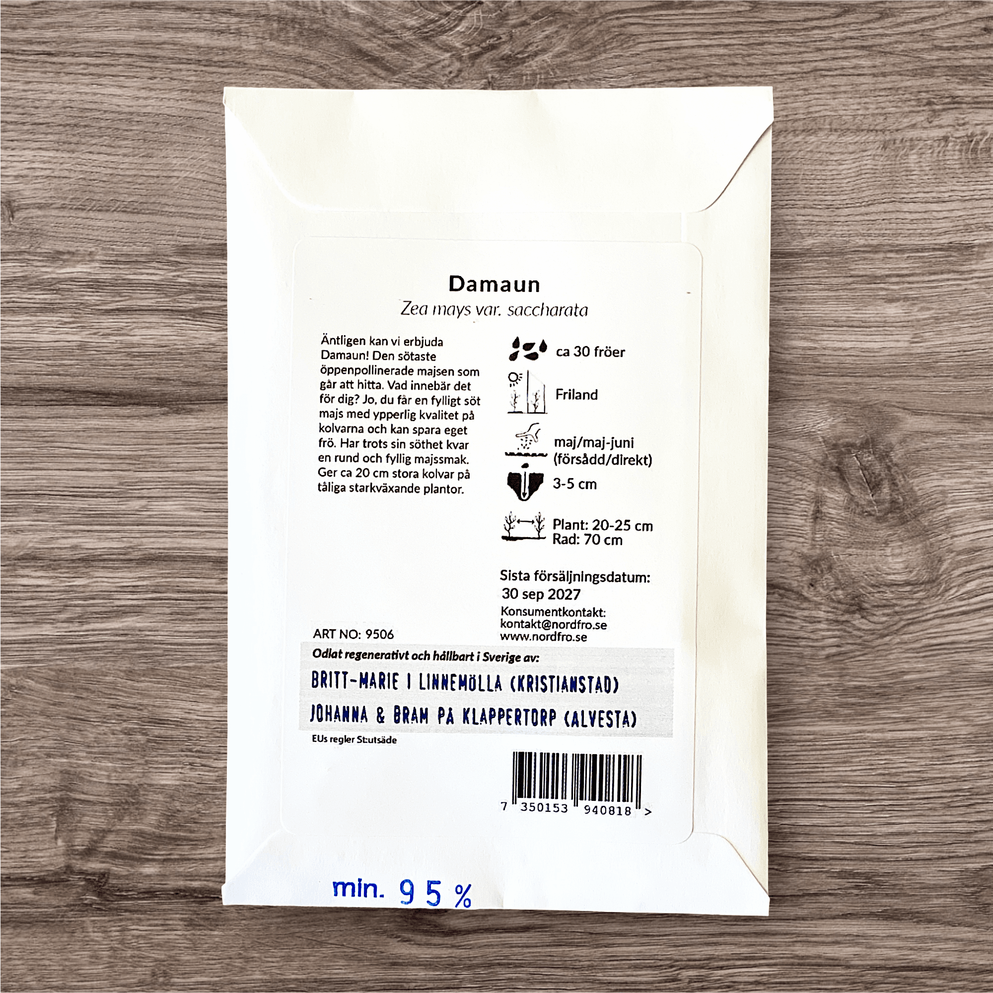 Sockermajs Damaun. Den sötaste öppenpollinerade majsen som går att hitta. Vad innebär det för dig? Jo du får en fylligt söt majs med ypperlig kvalitet på kolvarna och kan spara eget frö. Har trots sin söthet kvar en rund och fyllig majssmak. Ger ca 20 cm stora kolvar på tåliga starkväxande plantor.